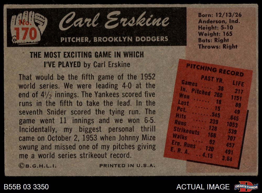 1955 Bowman #170 Carl Erskine 4 - VG/EX