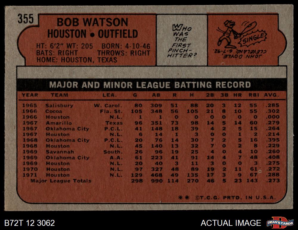 1972 Topps #355 Bob Watson