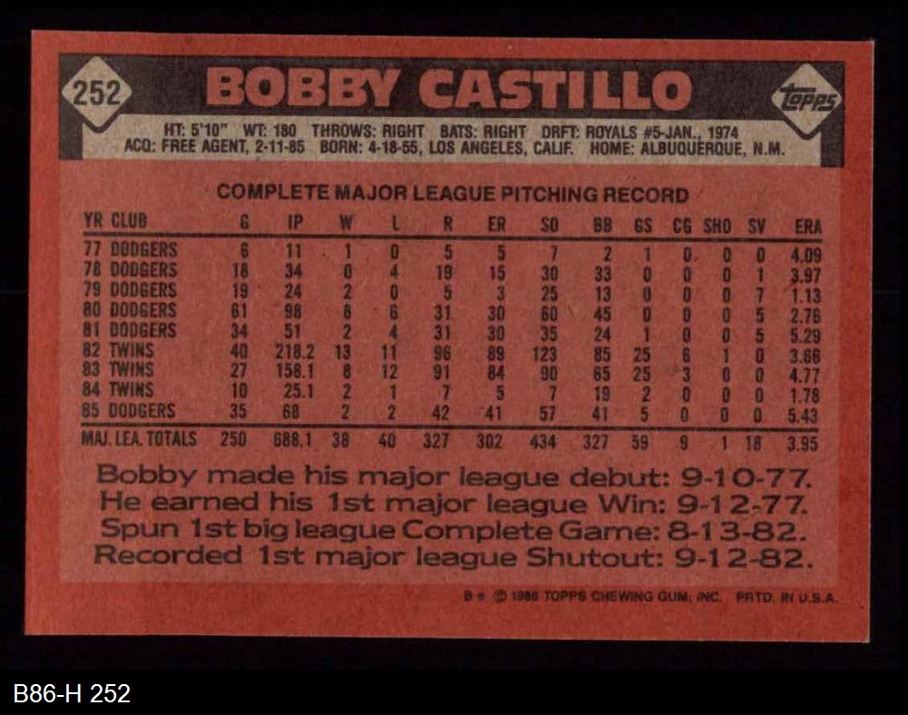 1986 Topps #252 Bobby Castillo 8 - NM/MT