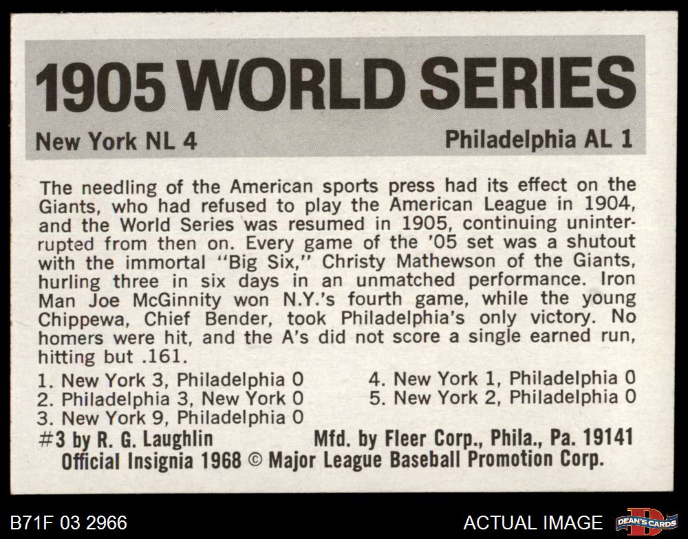 1971 Fleer World Series #3 - Christy Mathewson 1905 Giants / A's 6 - EX/MT