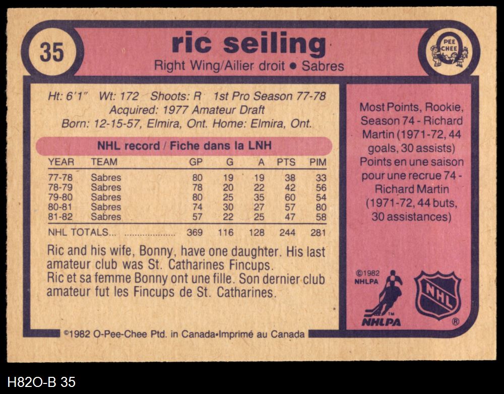 1982 O-Pee-Chee #35 Ric Seiling 8 - NM/MT