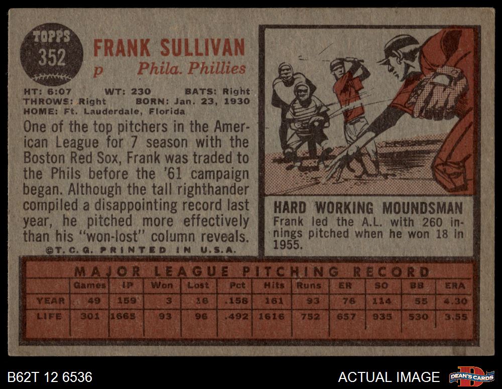 1962 Topps #352 Frank Sullivan