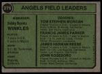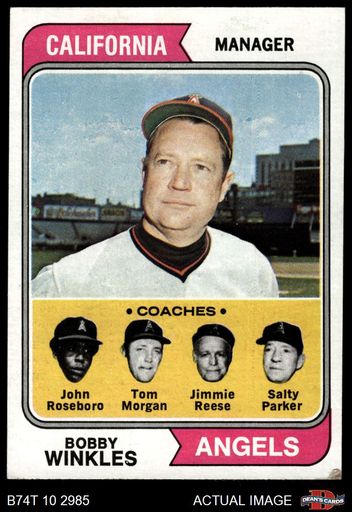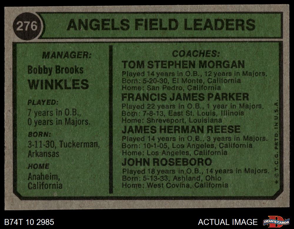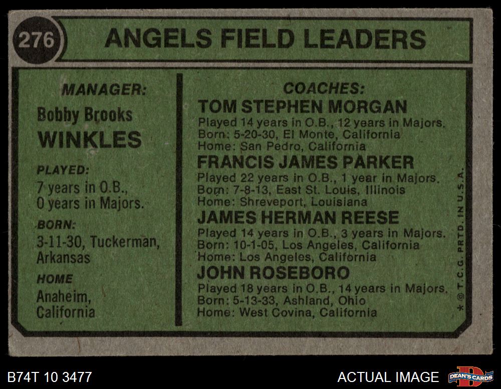 1974 Topps #276 - Bobby Winkles / Tom Morgan / Salty Parker / Jimmie Reese / John Roseboro Angels Leaders 3 - VG