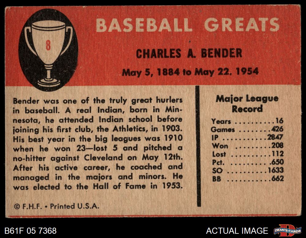 1961 Fleer #8 Chief Bender 3.5 - VG+