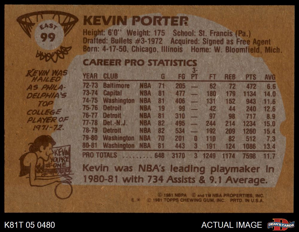 1981 Topps #99 E Kevin Porter 8 - NM/MT