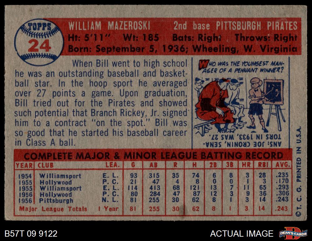 1957 Topps #24 Bill Mazeroski