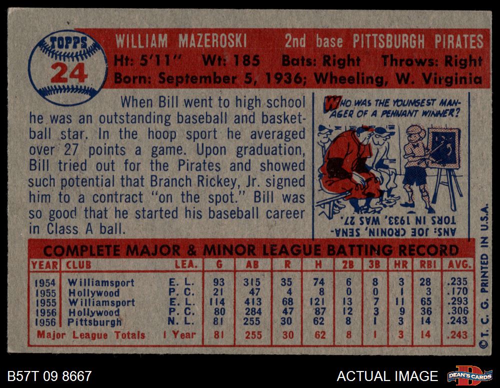 1957 Topps #24 Bill Mazeroski 3 - VG