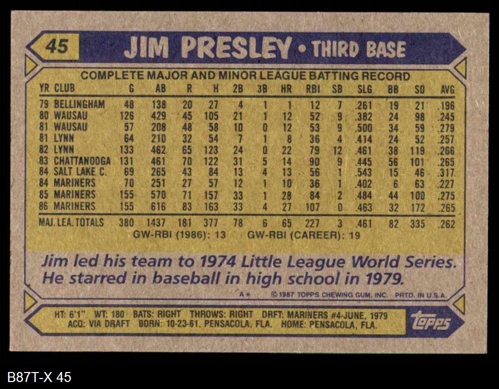 1987 Topps #45 Jim Presley
