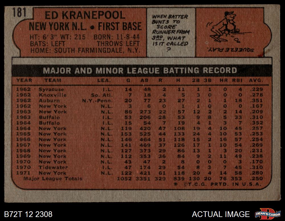 1972 Topps #181 Ed Kranepool