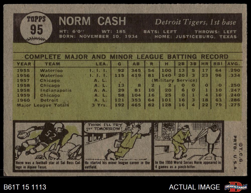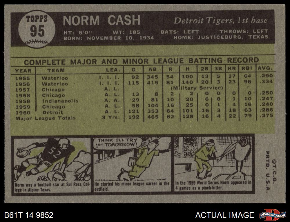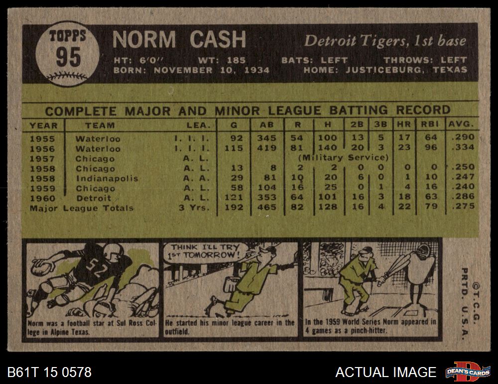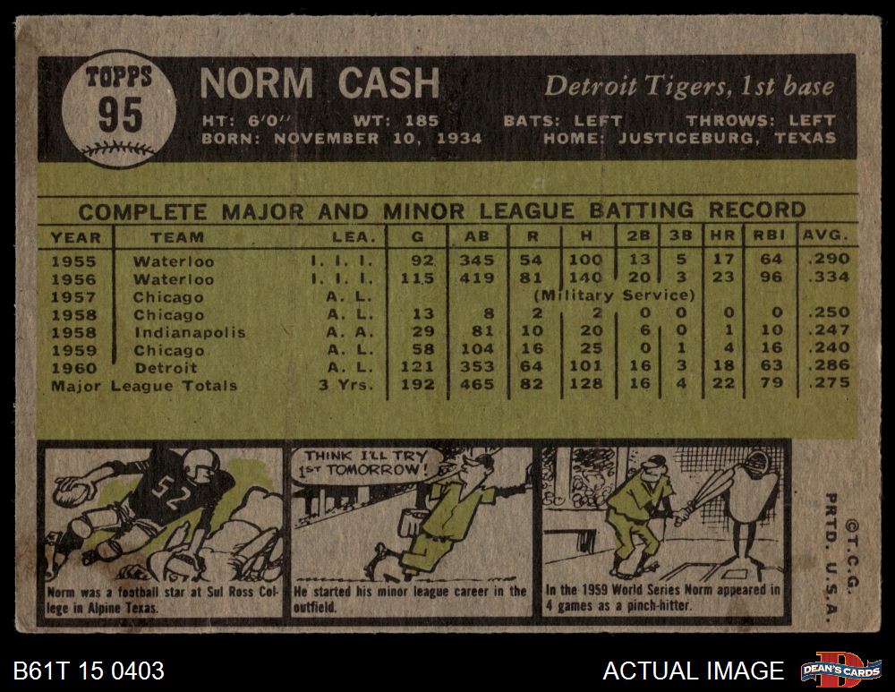 1961 Topps #95 Norm Cash 4 - VG/EX