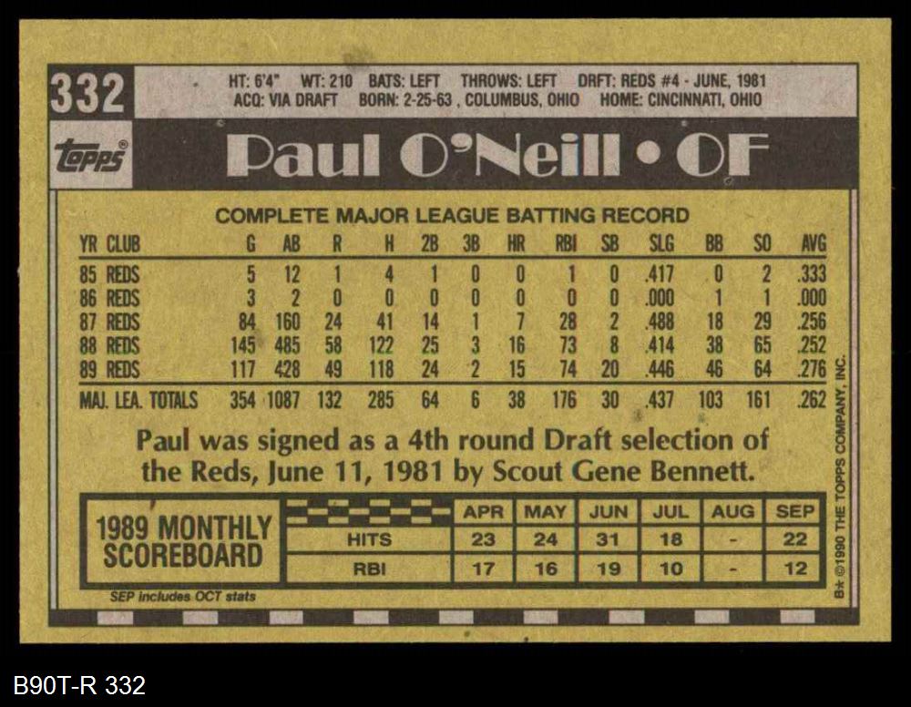 1990 Topps #332 Paul O'Neill
