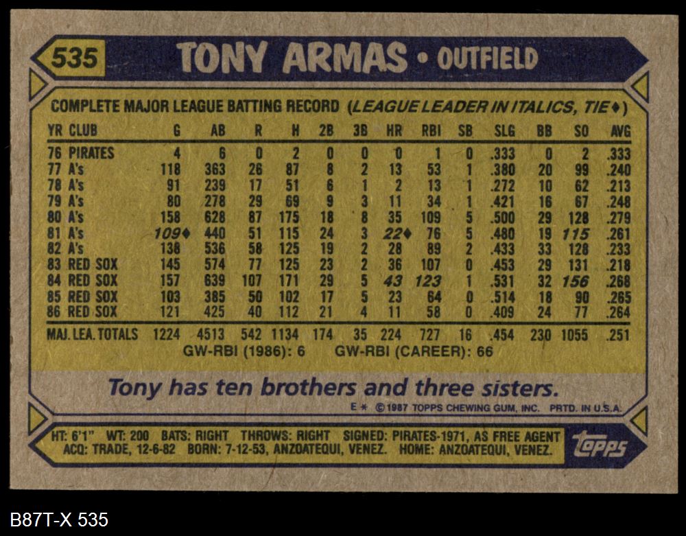 1987 Topps #535 Tony Armas