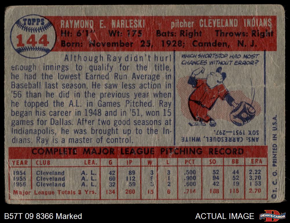 1957 Topps #144 Ray Narleski AUTHENTIC