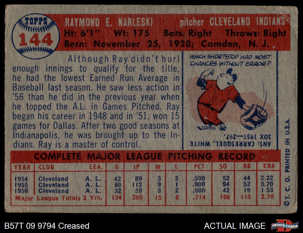 1957 Topps #144 Ray Narleski 1.5 - FAIR