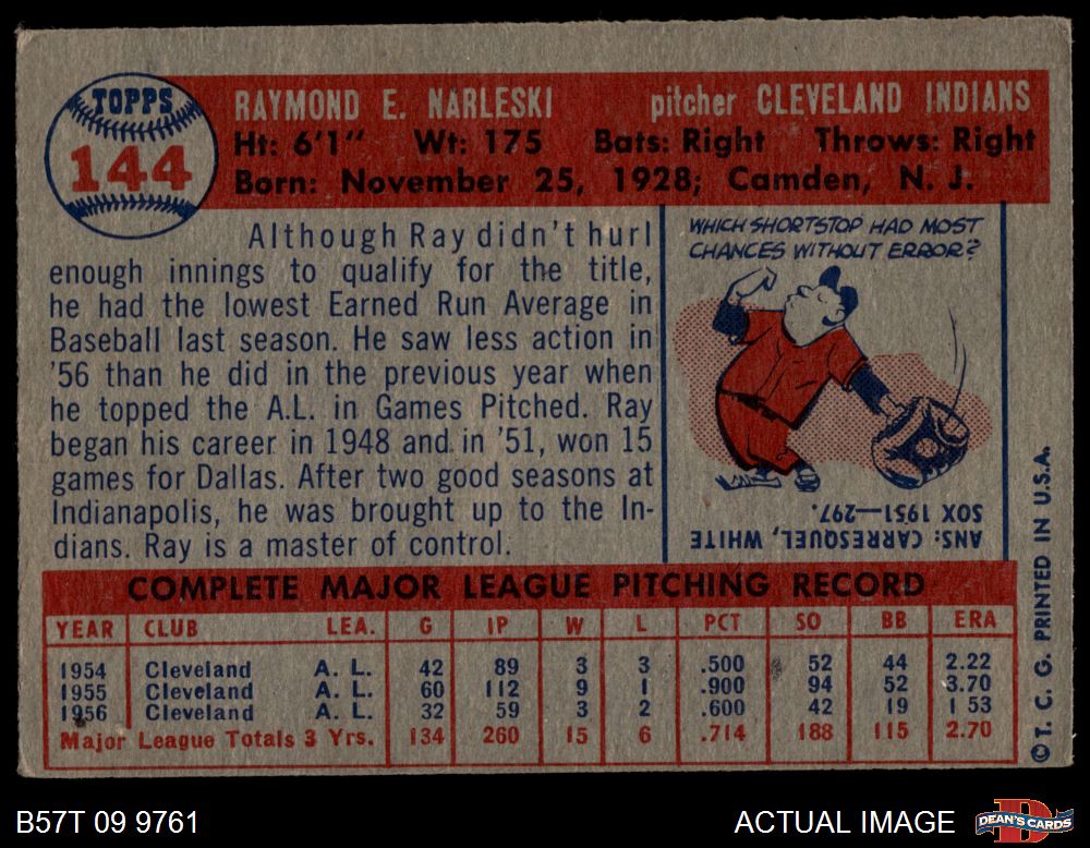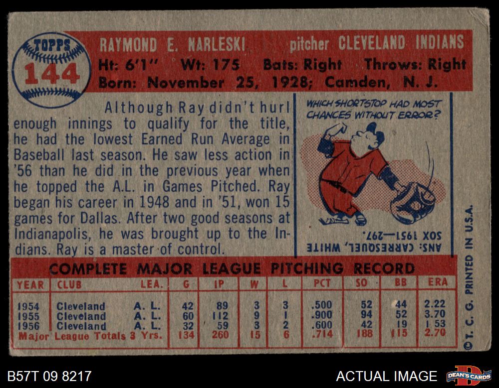 1957 Topps #144 Ray Narleski 2 - GOOD