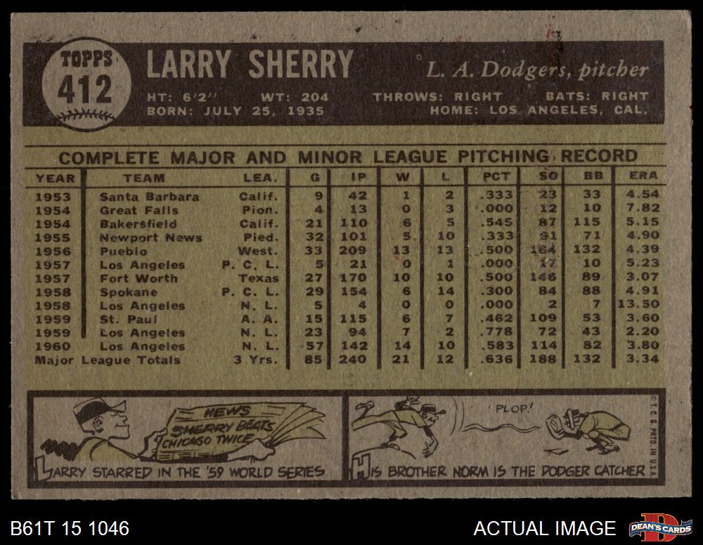 1961 Topps #412 Larry Sherry 1.5 - FAIR