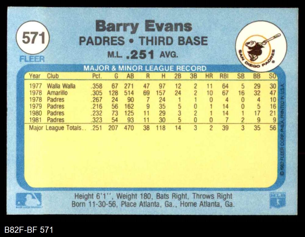 1982 Fleer #571 Barry Evans 8 - NM/MT
