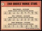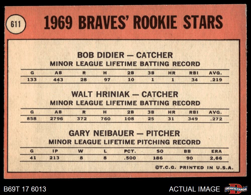 1969 Topps #611 - Bob Didier / Wal Hriniak / Gary Neibauer Braves Rookies 4 - VG/EX