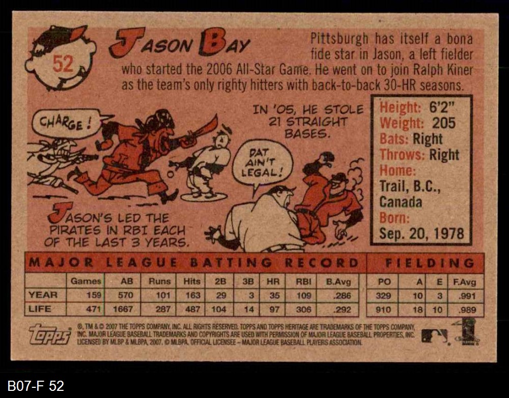 2007 Topps Heritage #52 WT Jason Bay 8 - NM/MT