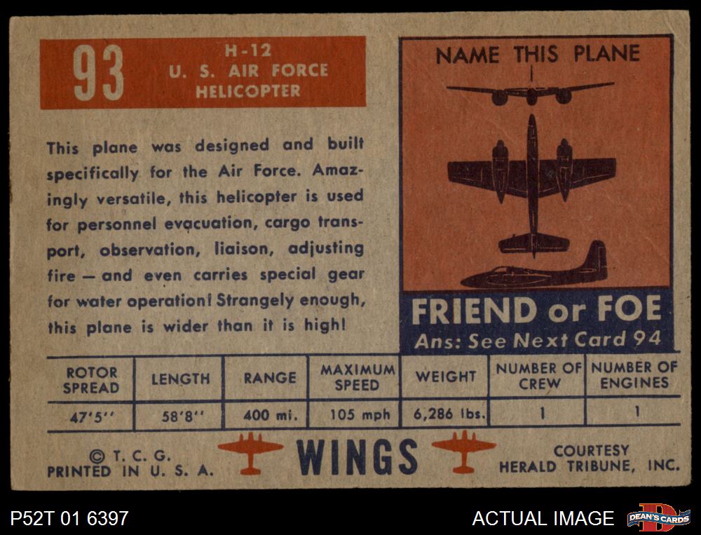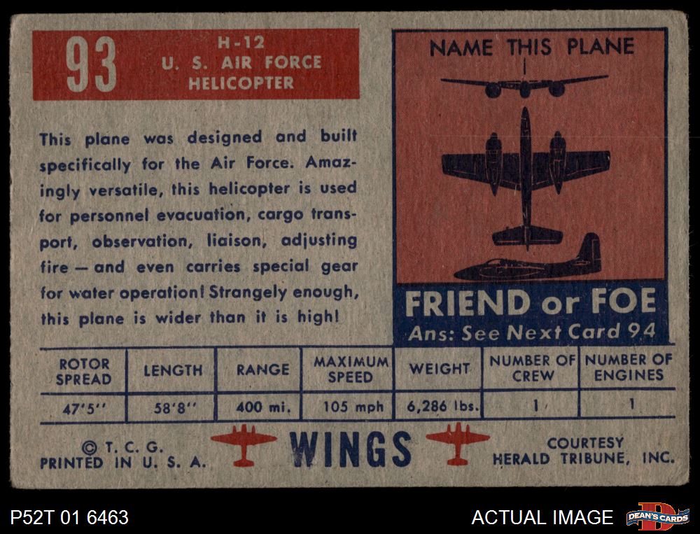 1952 Topps Wings #93 H-12 2 - GOOD