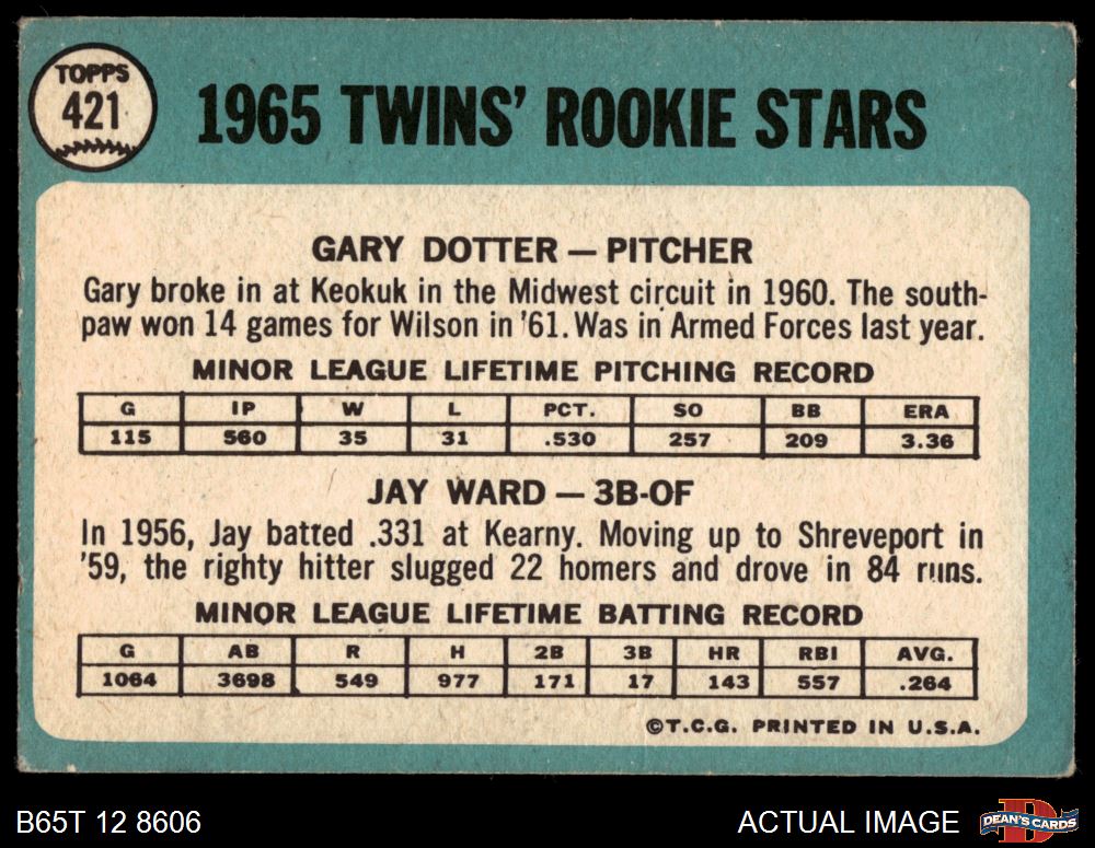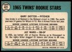 1965 Topps #421 - Gary Dotter / Jay Ward Twins Rookies 3 - VG
