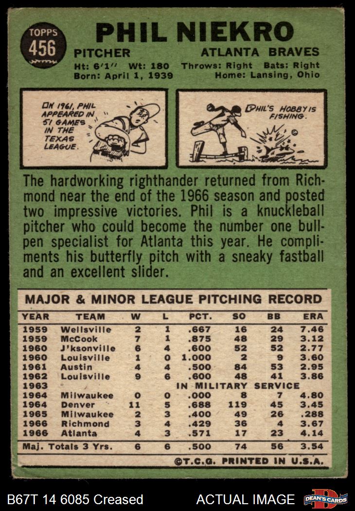 1967 Topps #456 Phil Niekro 2 - GOOD
