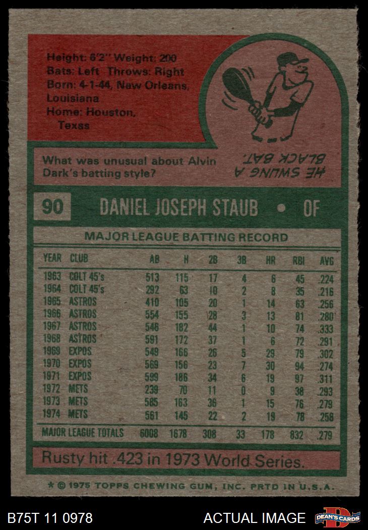 1975 Topps #90 Rusty Staub 4.5 - VG/EX+