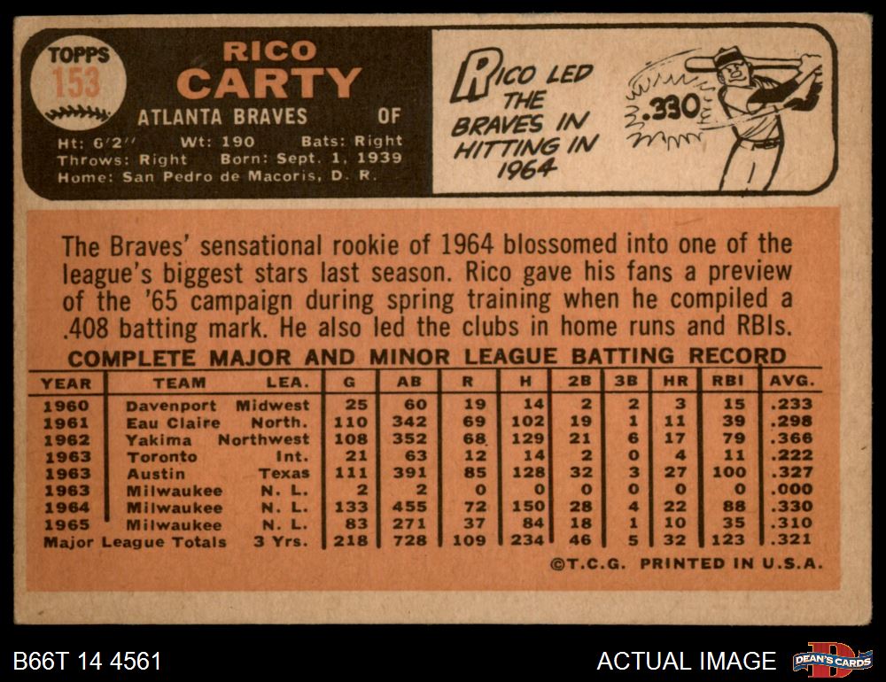 1966 Topps #153 Rico Carty 1 - POOR