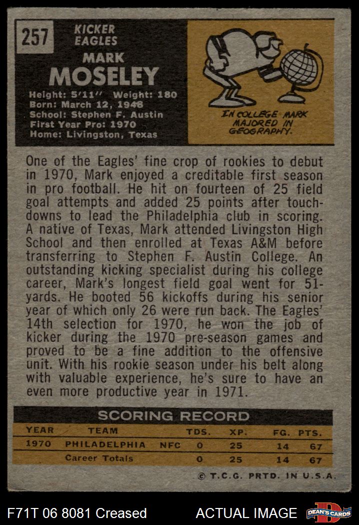 1971 Topps #257 Mark Moseley 2 - GOOD
