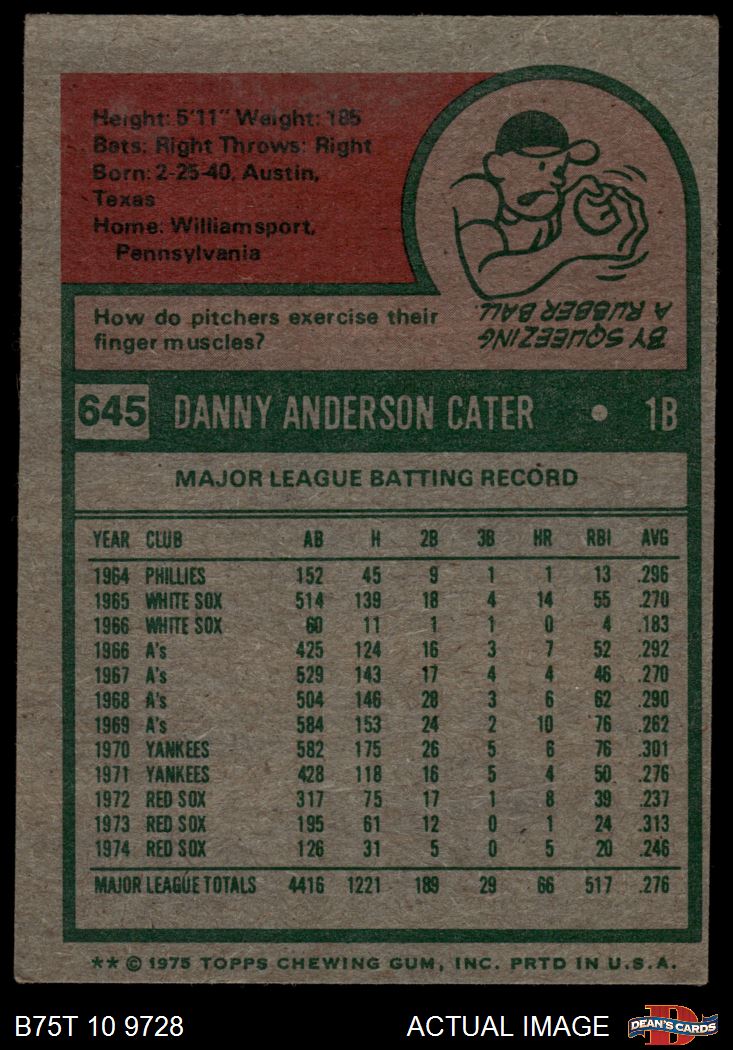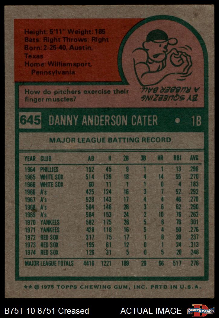 1975 Topps #645 Danny Cater