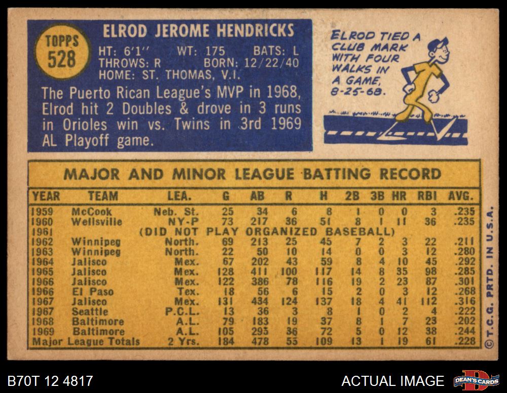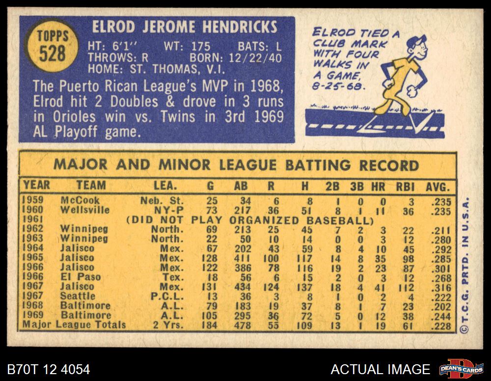 1970 Topps #528 Elrod Hendricks 6 - EX/MT