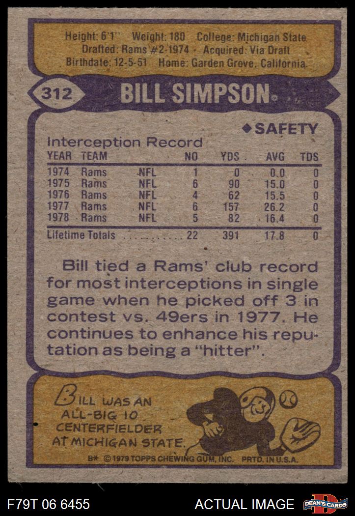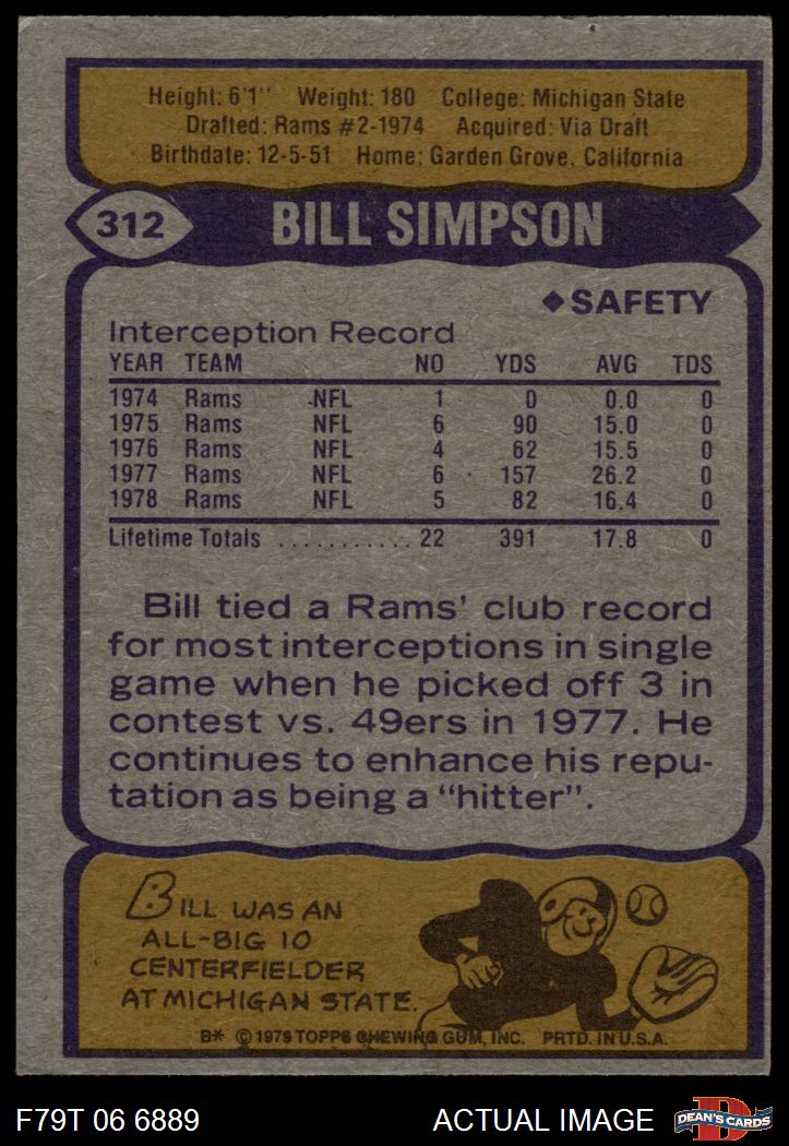 1979 Topps #312 - Bill Simpson All-Pro 3 - VG