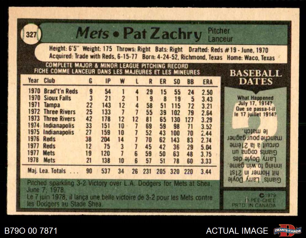 1979 O-Pee-Chee #327 Pat Zachry