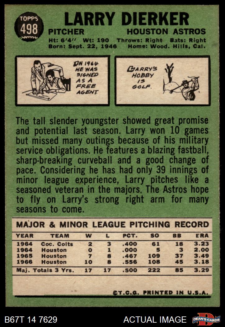 1967 Topps #498 Larry Dierker 6.5 - EX/MT+