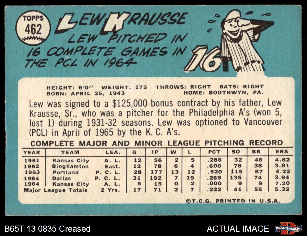 1965 Topps #462 Lew Krausse 2 - GOOD