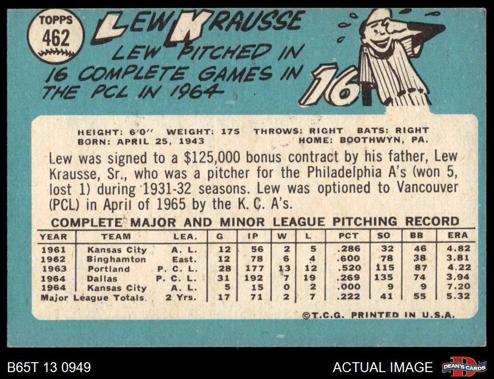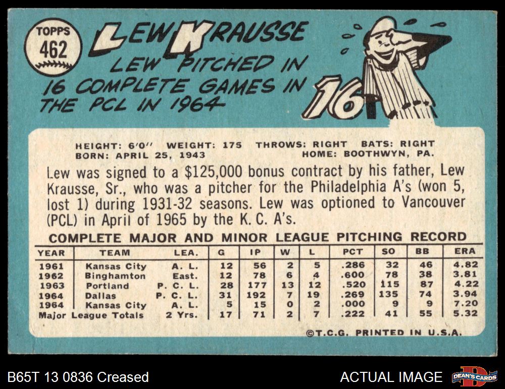 1965 Topps #462 Lew Krausse Front Thumbnail