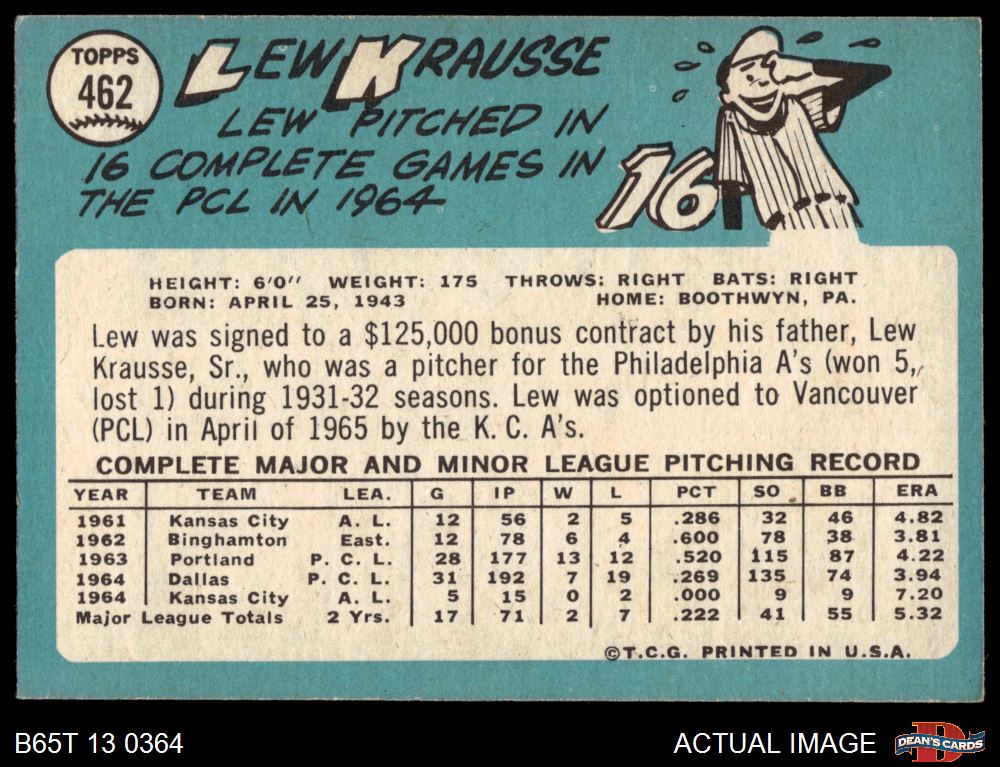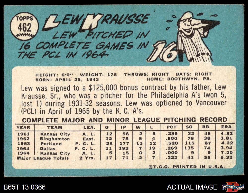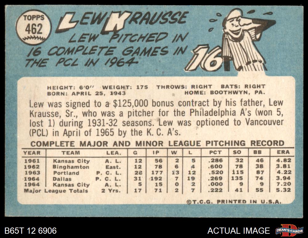 1965 Topps #462 Lew Krausse 4 - VG/EX