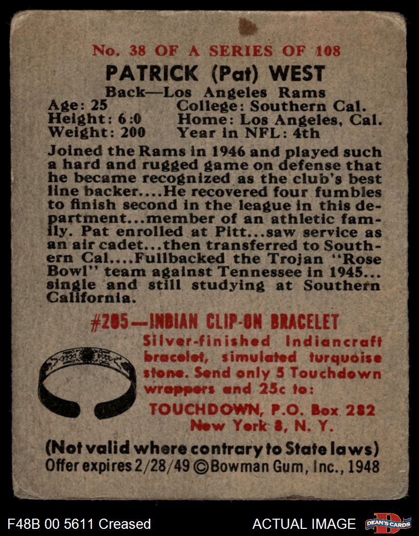 1948 Bowman #38 Pat West 1.5 - FAIR
