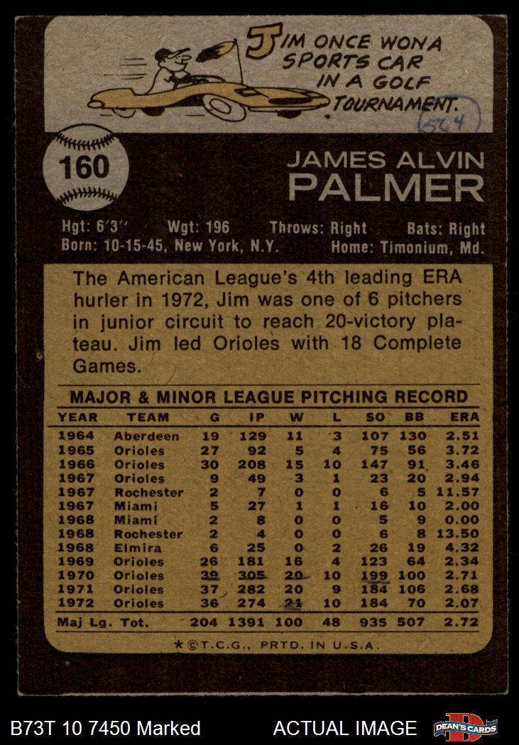 1973 Topps #160 Jim Palmer 1.5 - FAIR