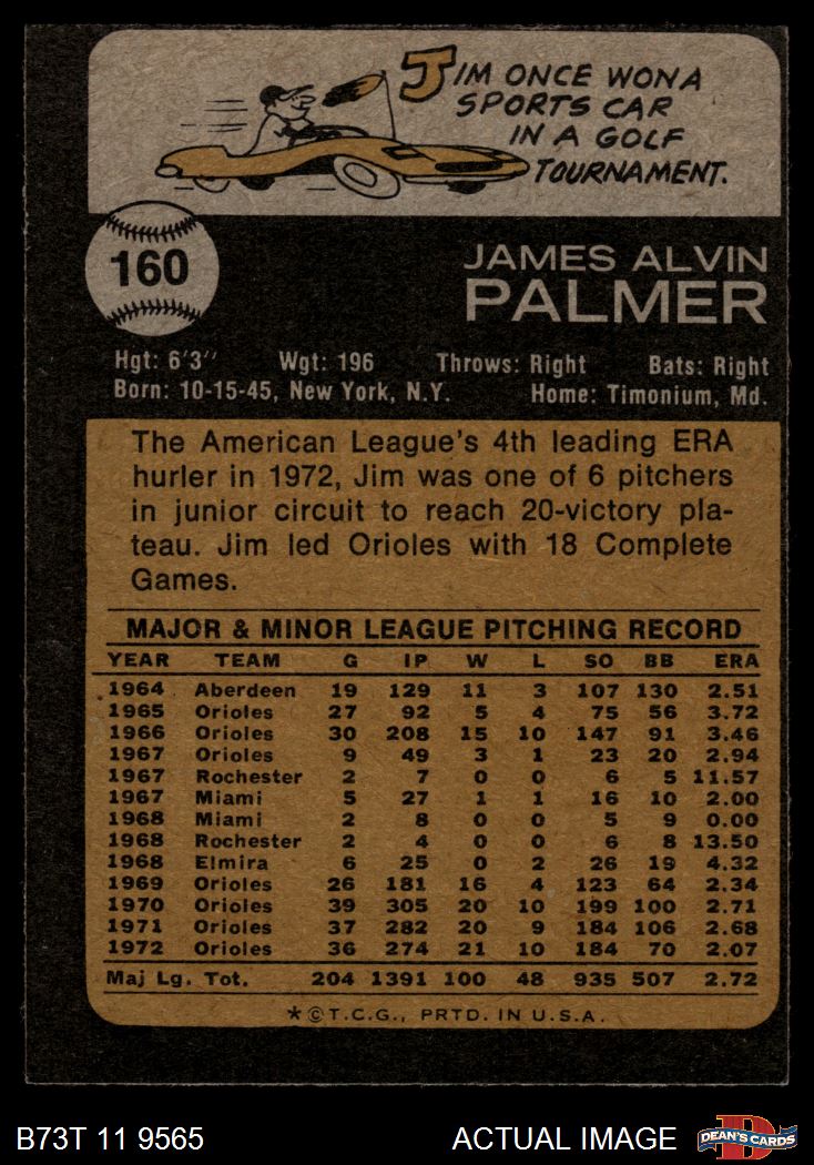 1973 Topps #160 Jim Palmer Front Thumbnail
