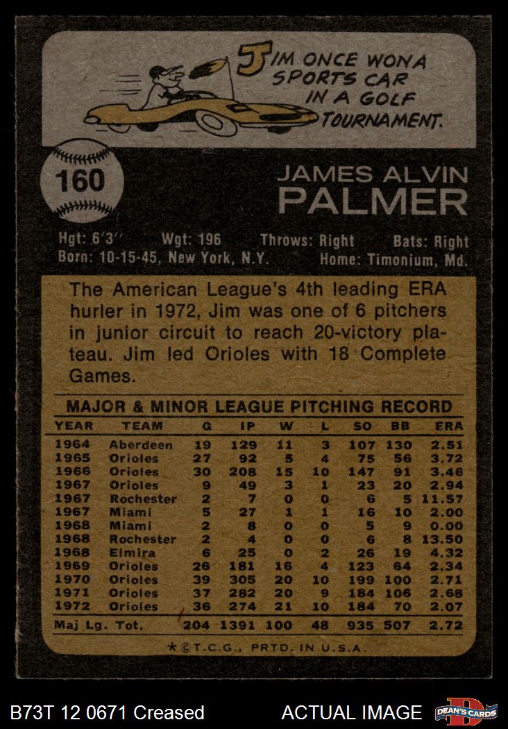 1973 Topps #160 Jim Palmer 3 - VG