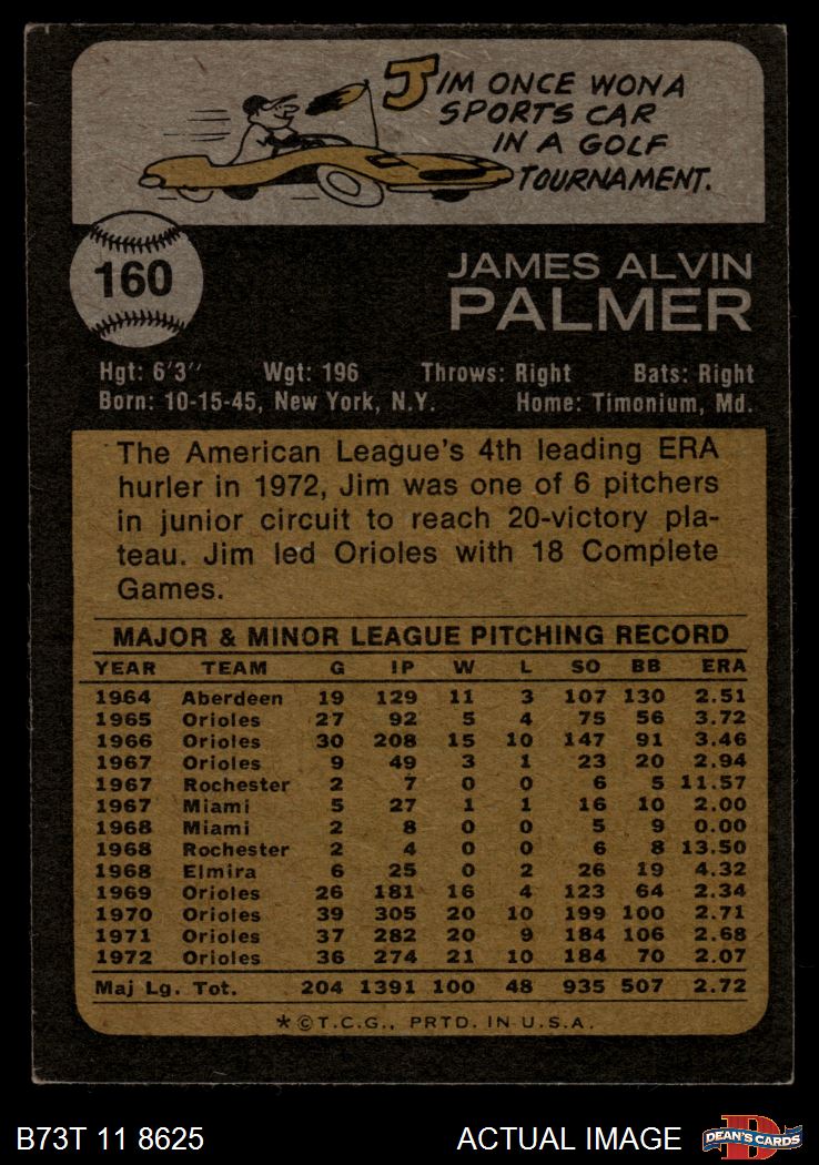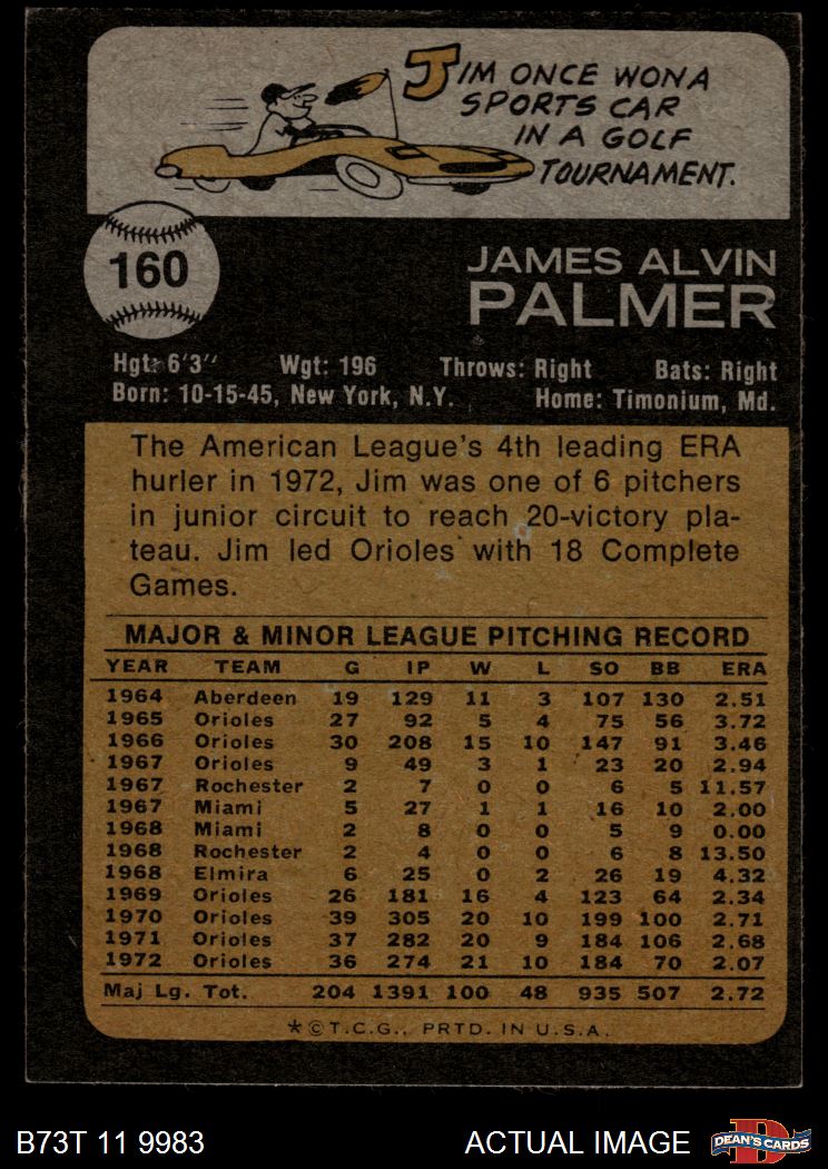 1973 Topps #160 Jim Palmer 4 - VG/EX