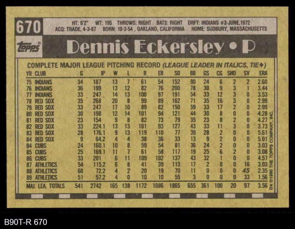 1990 Topps #670 Dennis Eckersley 8 - NM/MT