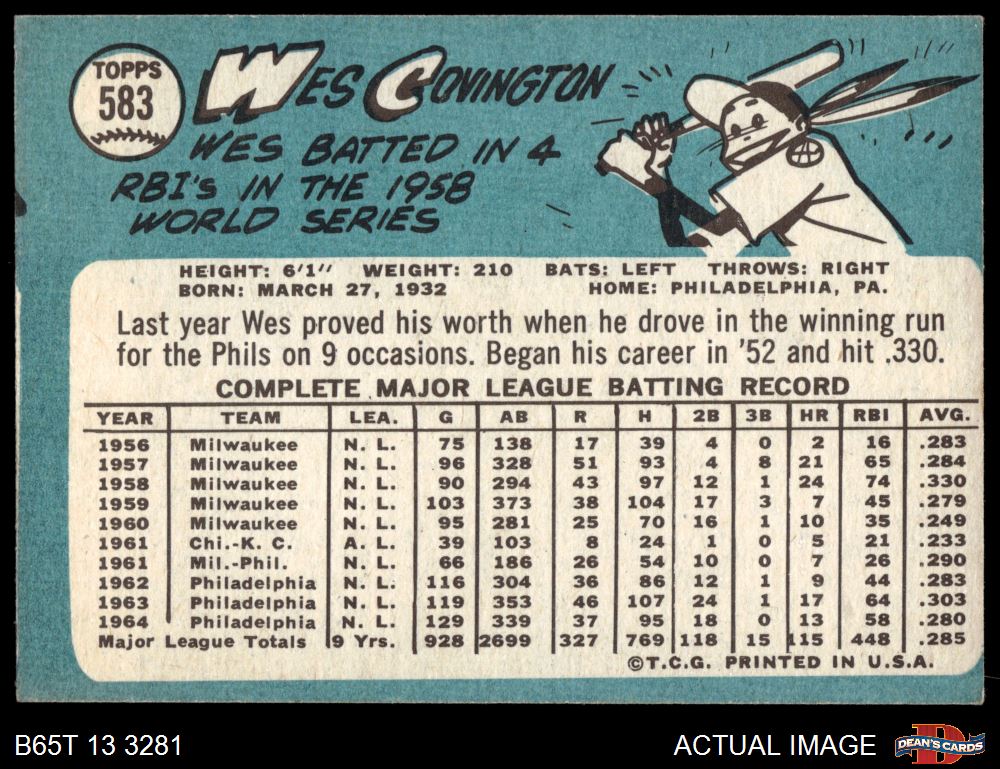 1965 Topps #583 Wes Covington 3 - VG