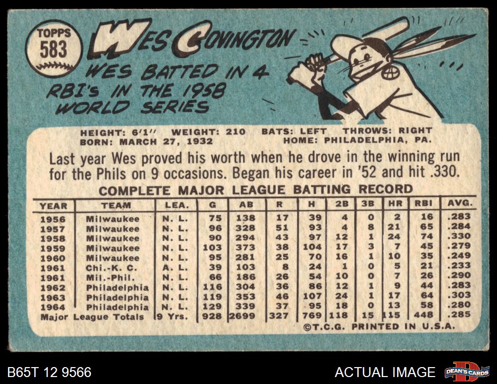1965 Topps #583 Wes Covington 4 - VG/EX