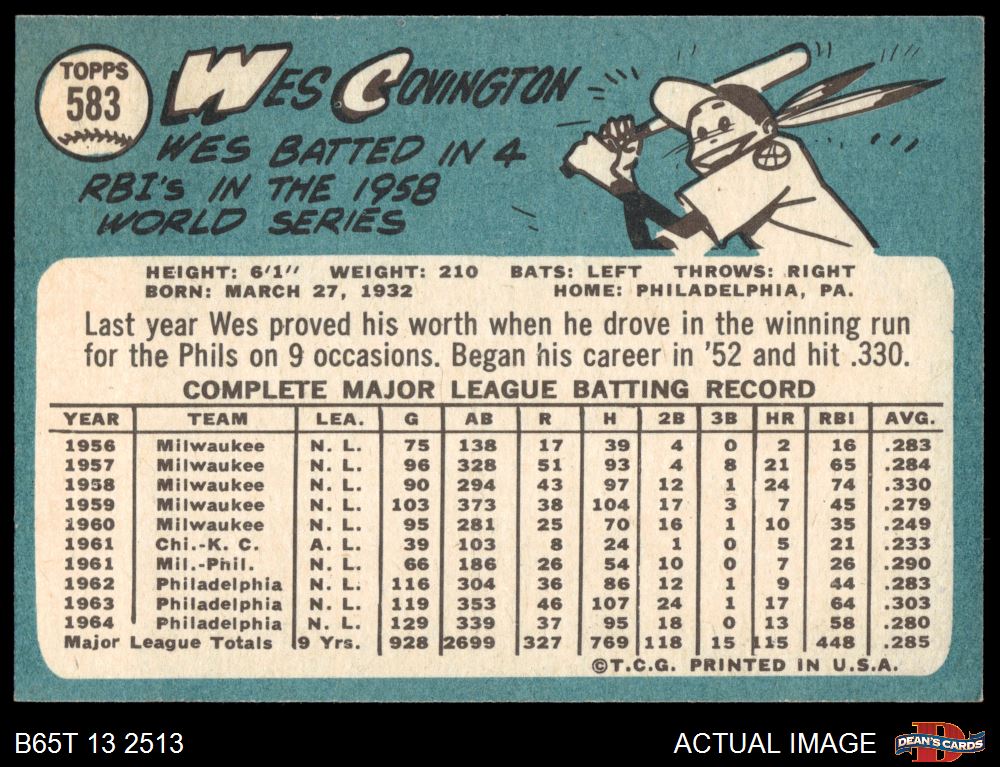 1965 Topps #583 Wes Covington 5.5 - EX+