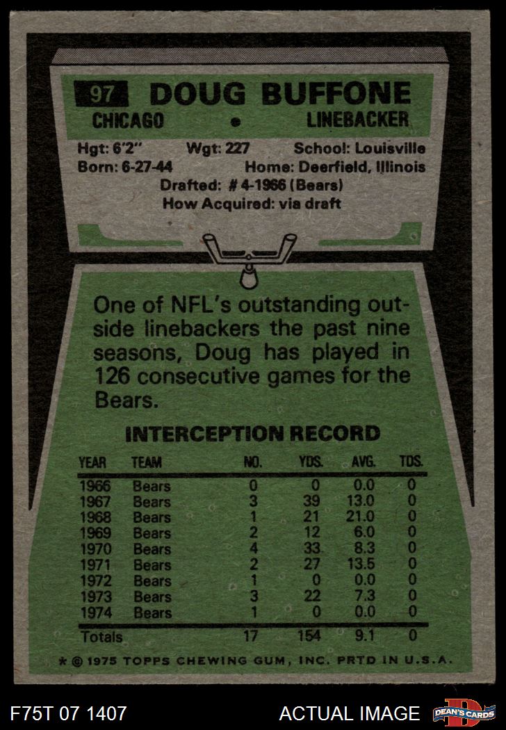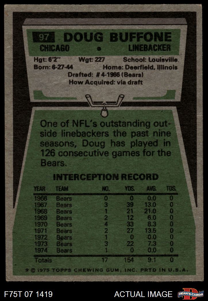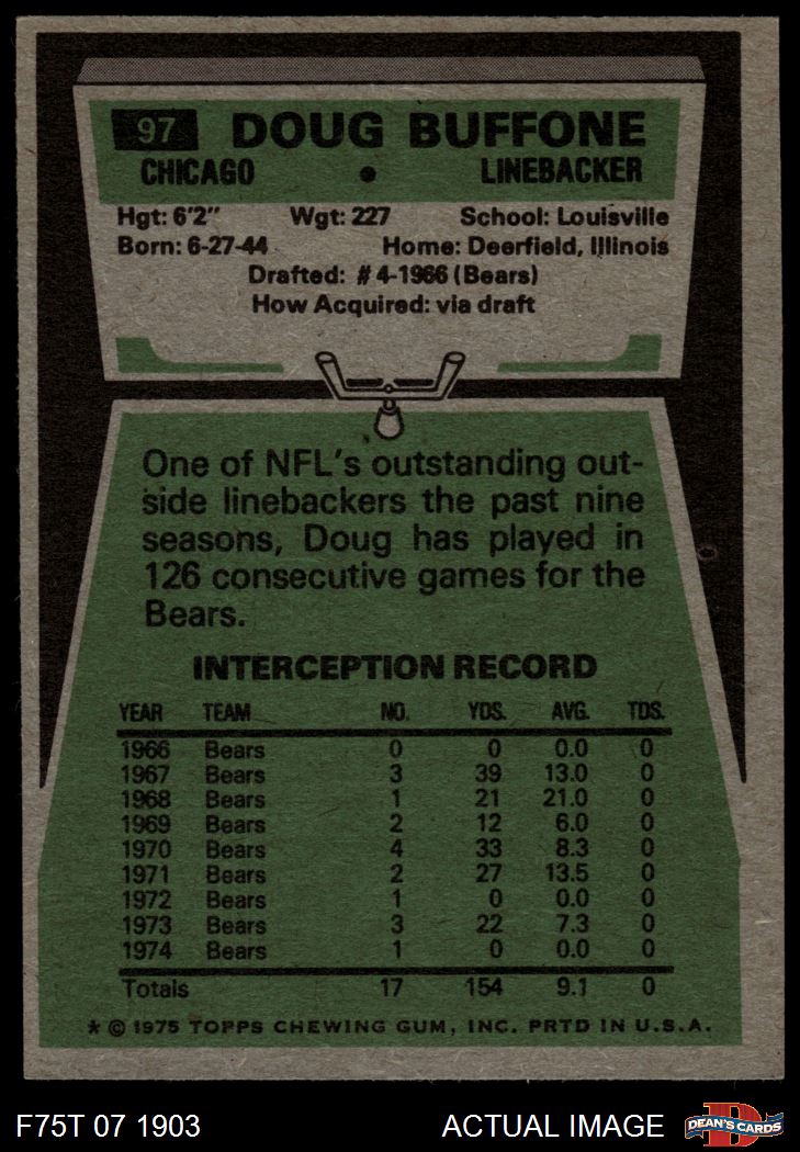 1975 Topps Football Cards (8,413 available)1975 Topps Bears (421 available)