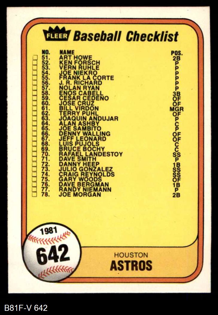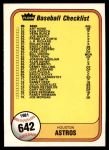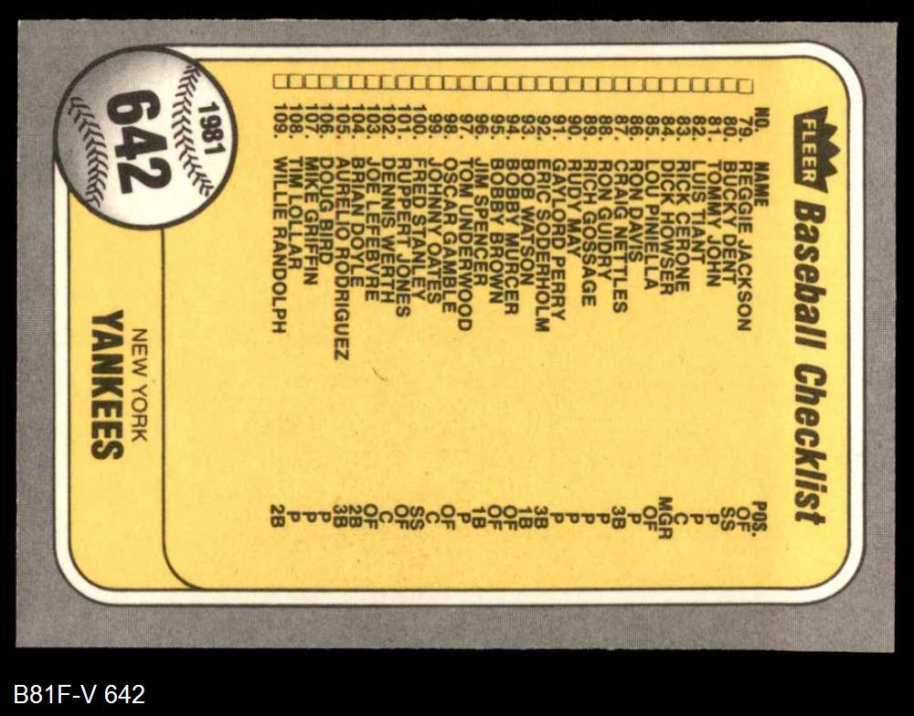 1981 Fleer #642 Astros / Yankees Checklist