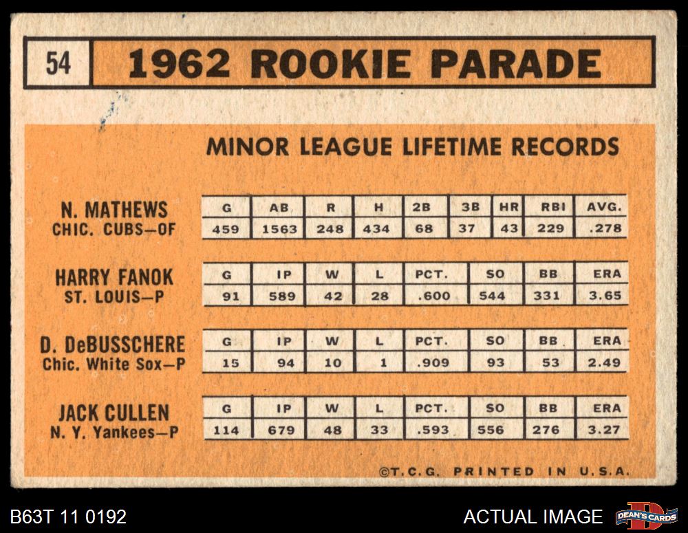 1963 Topps #54 TWO - Dave DeBusschere / Nelson Matthews / Harry Fanok / Jack Cullen Rookie Stars 3 - VG