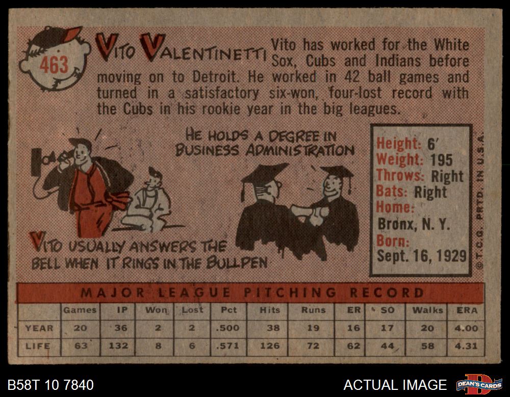 1958 Topps #463 Vito Valentinetti 3 - VG
